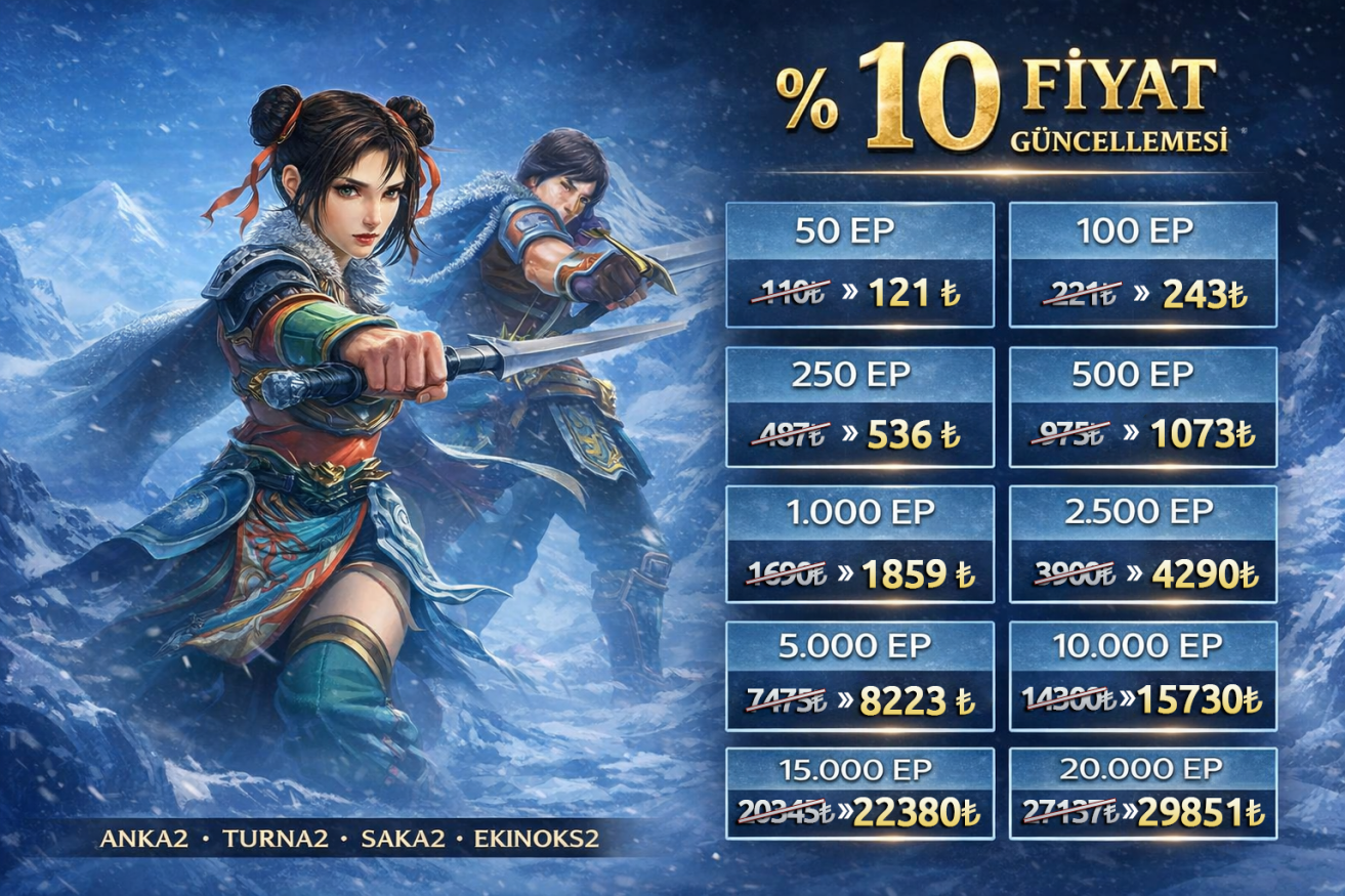 Daha önce sizlerle paylaştığımız bilgilendirme doğrultusunda, Nesne Market’te yer alan Ejderha Parası fiyatlarında %10 oranında artış güncellemesi gerçekleştirilmiştir.